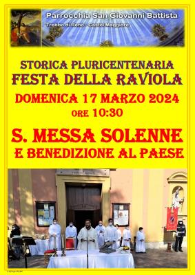 Venerdì 15 Marzo 2024 ore 16.00: apertura stand gastronomici e osteria Ass. Bon da Gninta (Piazza della Resistenza) ore 16.00: apertura area Luna Park (parcheggio di via Ugo Foscolo) ore 18.30: ritrovo associazioni ludiche (parcheggio di via Ugo Foscolo) ore 16.30–18.30: consegna delle raviole per il concorso “Re o Regina della Raviola” presso il Centro di Lettura L’Isola del Tesoro (via Lame 182) ore 20.30: Dj set con Frankie DJ (Piazza della Resistenza) ore 20.30: Torneo Dungeons & Dragon (parcheggio di via Ugo Foscolo) Sabato 16 Marzo 2024 ore 8.30–12.30: “FAI CON NOI LA TUA RAVIOLA!” – laboratorio di raviole con i bambini della scuola "Italo Calvino" presso il Centro Sociale R.C. Trebbo APS ore 10.00: apertura stand gastronomici e osteria Ass. Bon da Gninta (Piazza della Resistenza) ore 10.00: apertura stand di giochi da tavolo, di ruolo e di miniature (parcheggio di via Ugo Foscolo) ore 10.00: apertura area Luna Park (parcheggio di via Ugo Foscolo) ore 14.00–19.00: saggio delle associazioni Music Station e Progetto Danza DEF (Piazza della Resistenza) ore 15.00: torneo Magic the Gathering (iscrizioni wa +447594309381 – parcheggio di via Ugo Foscolo) ore 16.00: incontro con l’autore Beppe Roncari presso il Centro di Lettura L’Isola del Tesoro (via Lame 182) ore 16.00: partenza "Camminata della Raviola" organizzata dal Gruppo Podistico Progresso (Piazza della Resistenza) ore 20.30: concerto della band Cialtronight (Piazza della Resistenza) ore 20.45: serata “A m’arcórd” con Fausto Carpani, concorso "Re o Regina della Raviola" e premiazione del laboratorio di raviole dei bambini (aula magna della scuola primaria "Italo Calvino") ore 20.45: CAMPI E MARINE – mostra personale di pittura a cura di Fausto Giovagnoni (atrio della scuola primaria "Italo Calvino") Domenica 17 Marzo 2024 ore 9.00: apertura mercato rionale (via Lame) ore 9.00–18.00: METTIAMO IN MOSTRA esposizioni varie: foto, manufatti in legno, presepi, moto d’epoca presso La contea Malossi (via Lame 95) ore 10.00: apertura stand gastronomici e osteria Ass. Bon da Gninta (Piazza della Resistenza) ore 10.00: apertura stand di giochi da tavolo, di ruolo e di miniature (parcheggio di via Ugo Foscolo) ore 10.00: apertura area Luna Park (parcheggio di via Ugo Foscolo) ore 10.00: apertura mercato degli hobbisti e delle associazioni del territorio (via della Resistenza) ore 10.00–12.00: CACCIA AI COLORI – gioco per bambini da 3 a 5 anni (cortile della scuola primaria "Italo Calvino") ore 10.30: Santa Messa Solenne e benedizione al Paese – Chiesa San Giovanni Battista ore 11.00: iscrizione gara cosplayer (Piazza della Resistenza) ore 12.00: premiazione del concorso “Re o Regina della Raviola” (Piazza della Resistenza) ore 12.00: ristoro con lasagne, crescentine con affettati e formaggi (Centro Sociale R.C. Trebbo) ore 14.30–18.00: mostra mercato delle scuole di Trebbo (cortile scuola primaria "Italo Calvino") ore 14.30: inizio gara cosplayer con Manga Beats (Piazza della Resistenza) ore 15.00: torneo Coloni di Catan (parcheggio di via Ugo Foscolo) ore 15.00: esibizione discipline di judo e aikido della Polisportiva Progresso (parco di via della Resistenza) ore 17.00: presentazione e premiazione dei gruppi cosplayer (Piazza della Resistenza) ore 18.00: Dj set di Mad Max dj (Piazza della Resistenza) ore 20.30: finale Torneo D&D (Parcheggio di via Ugo Foscolo) Modifiche alla viabilità e sosta Con ordinanza n.16 del 2024 è stato disposto: DIVIETO DI SOSTA CON RIMOZIONE FORZATA in Via Resistenza negli stalli adiacenti la piazza, da mercoledì 13/03 dalle ore 14:00 fino a fine manifestazione; DIVIETO DI SOSTA CON RIMOZIONE FORZATA in un posto auto in Via Fosse Ardeatine in corrispondenza della curva adiacente l’accesso carrabile della palestra comunale dalle ore 8:00 del 15/03/2024 alle ore 24:00 del 17/03/2024; DIVIETO DI SOSTA CON RIMOZIONE FORZATA dalle ore 7:00 del giorno 16 marzo 2024 alle ore 24:00 del giorno 17 marzo 2024 in Via delle Fosse Ardeatine nell’area prospicente la scuola elementare su ambo i lati; DIVIETO DI SOSTA CON RIMOZIONE FORZATA dalle ore 14:30 alle ore 18:30 del 16/03/2024 in Via Fosse Ardeatine civici n. 17-23 e 16-24 e dalle 7:00 alle 20:00 del giorno 17/03/2024, lato civici pari; DIVIETO DI SOSTA CON RIMOZIONE FORZATA nel Parcheggio interno lato destro di Via Resistenza dopo il civico n. 5 dalle ore 13:00 16/03/2024 alle ore 20:00 del 17/03/2024; DIVIETO DI ACCESSO ESCLUSO I RESIDENTI in Via Risorgimento in ingresso da Via Corticella per il giorno 17/03/2024 dalle ore 7:00 alle ore 20:00; DIVIETO DI CIRCOLAZIONE E DIVIETO DI SOSTA CON RIMOZIONE FORZATA dalle ore 7:00 del giorno 15/03/2024 alle ore 24:00 del 17/03/2024 Via Ugo Foscolo nel parcheggio adiacente Via Lame; DIVIETO DI CIRCOLAZIONE E DIVIETO DI SOSTA CON RIMOZIONE FORZATA dalle ore 7:00 alle ore 20:00 del giorno 17 marzo 2024 per le seguenti aree: ⋅ Via Fosse Ardeatine; ⋅ Via Resistenza; ⋅ Via Lame, dal civico n. 99 al civico n. 238; Non sarà consentita la circolazione nell’area mercatale a veicoli privati e pubblici, fatta eccezione per i mezzi di soccorso e Polizia; I veicoli lasciati in sosta nelle zone di divieto, con il supporto del Corpo di Polizia Municipale saranno rimossi, con spese a carico dei trasgressori. Sospensione del senso unico in Via Fosse Ardeatine e istituzione del doppio senso di circolazione solo per residenti, per il giorno 17 marzo 2024.