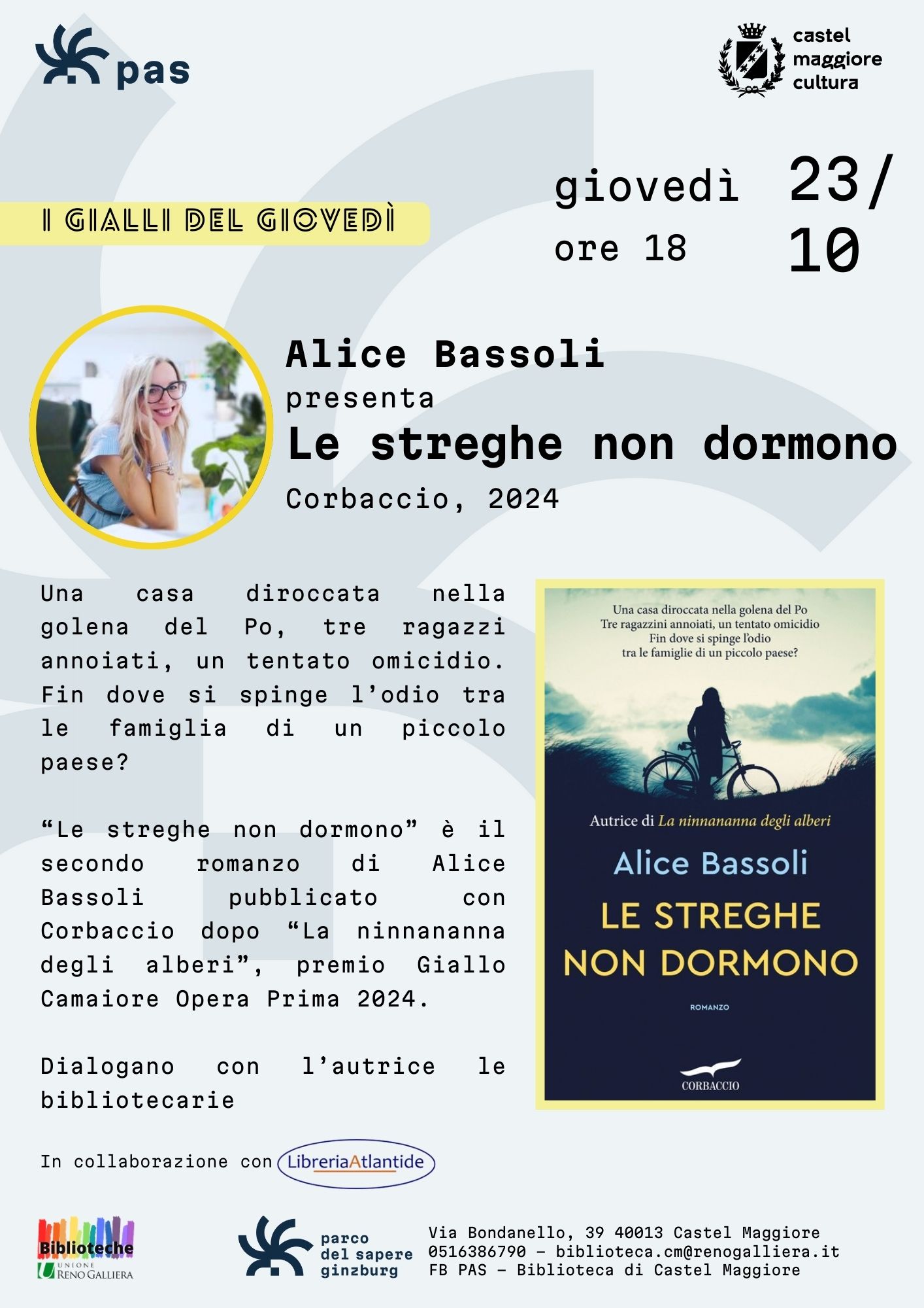 Una casa diroccata nella golena del Po, tre ragazzi annoiati, un tentato omicidio. Fin dove si spinge l’odio tra le famiglia di un piccolo paese? "Le streghe non dormono” è il secondo romanzo di Alice Bassoli pubblicato con Corbaccio dopo “La ninnananna degli alberi”, premio Giallo Camaiore Opera Prima 2024.