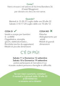Vieni a trovarci a Castel Maggiore nel salone di Via Irma Bandiera 36 per donare ciò che a te non serve.