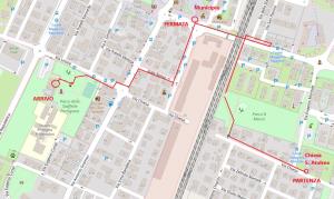 RITROVO ore 7.50 e partenza dai capolinea di Via Chiesa (S.Andrea) alle 8.00 e Piaz-za Amendola alle 8.05, con le fermate intermedie davanti al municipio (Via Matteot-ti+Rimembranze) e presso il Keynes (Via La Malfa + parchetto giochi).
