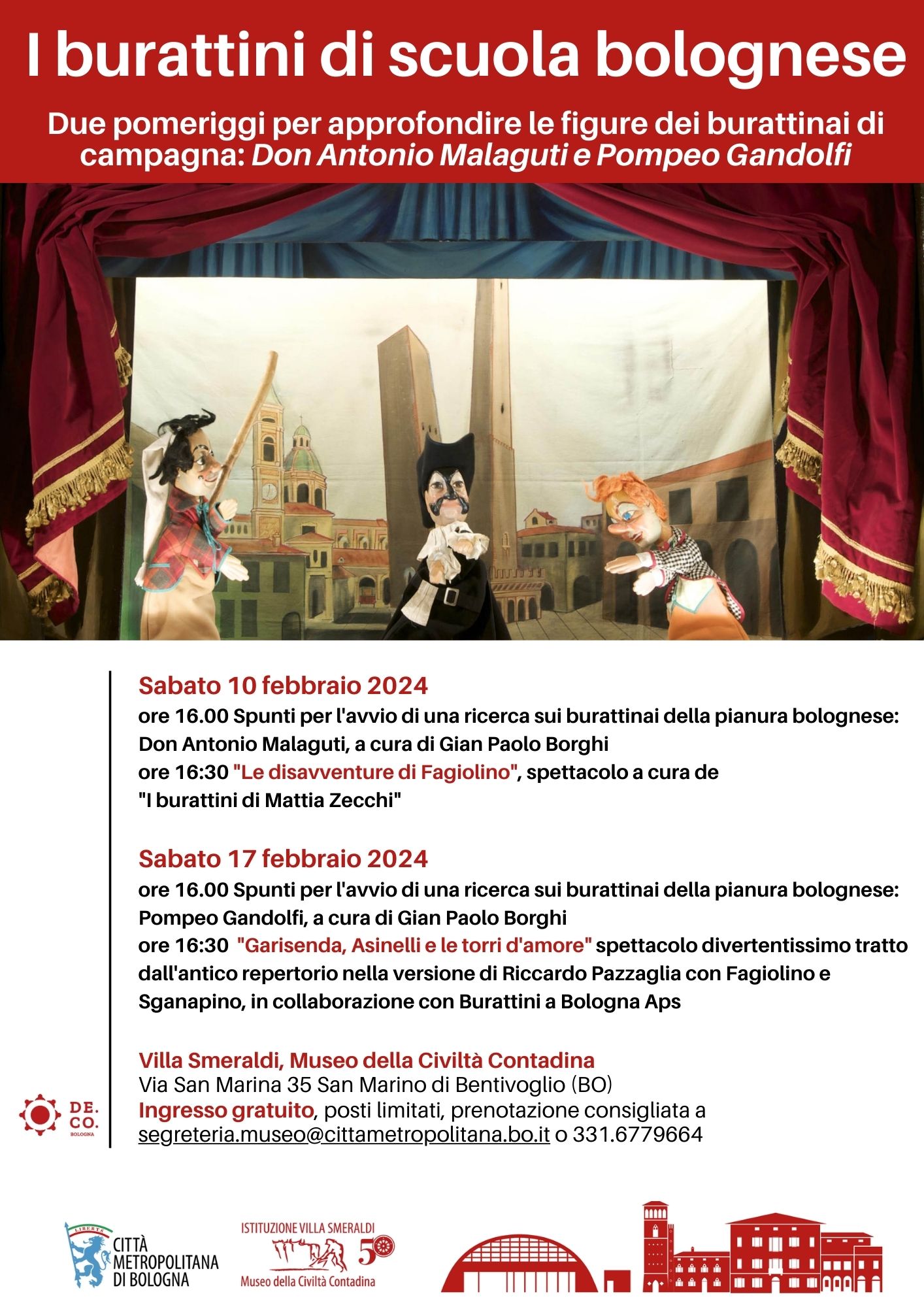 I due appuntamenti saranno anche l’occasione per approfondire le figure di burattinai di campagna: Don Antonio Malaguti e Pompeo Gandolfi.