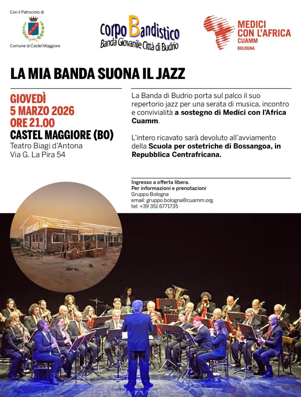 La Banda di Budrio porta sul palco il suo repertorio jazz per una serata di musica, incontro e convivialità a sostegno di Medici con l’Africa Cuamm.