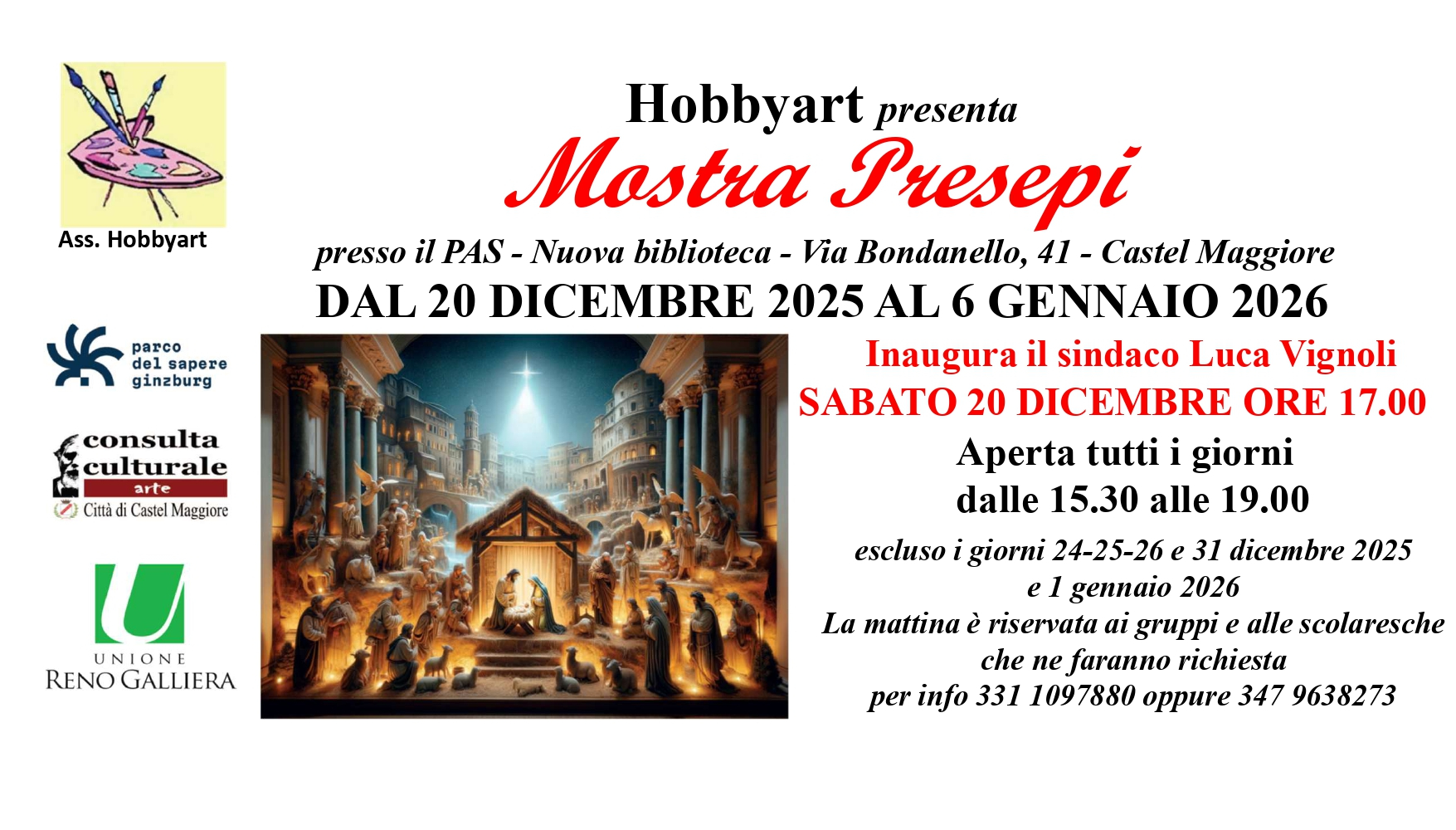 Da ben 25 anni, Hobbyart organizza la mostra dei presepi diventata un appuntamento immancabile nel calendario delle festività natalizie. Anche quest'anno tanti gli artisti partecipanti e con grande soddisfazione aumentano gli artisti in erba. Novità è la costruzione di un grande presepe che vede coinvolti più di 10 artisti; insieme hanno deciso un lavoro corale di grande impatto
